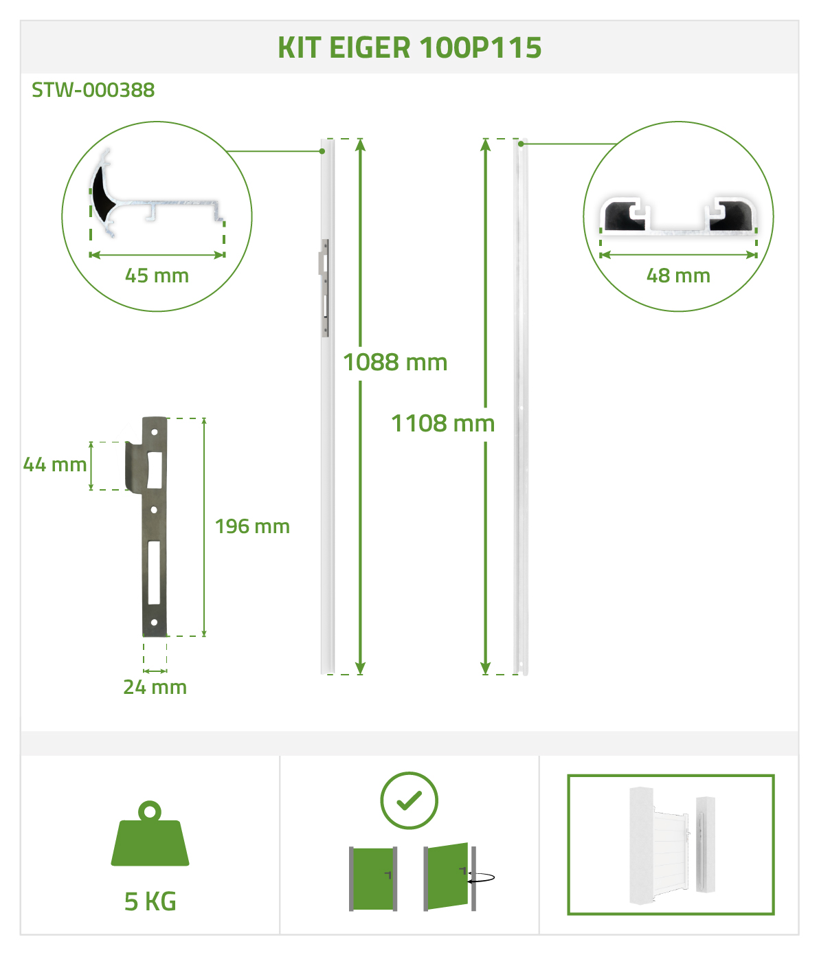 Dieses Set ist kompatibel mit Casanoov-Toren des Modells EIGER mit einer Breite von 1 Meter und einer Höhe von 115 cm.