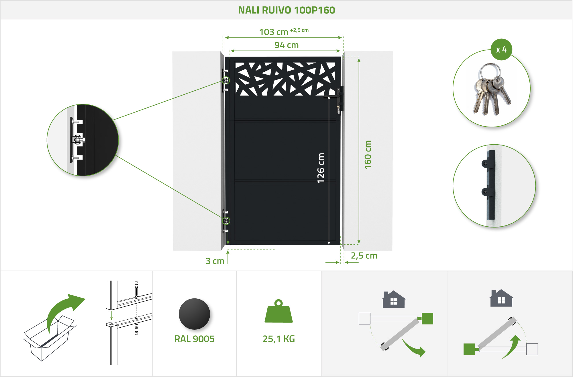 Stahltor 1 m NALI RUIVO H.160cm matt schwarz